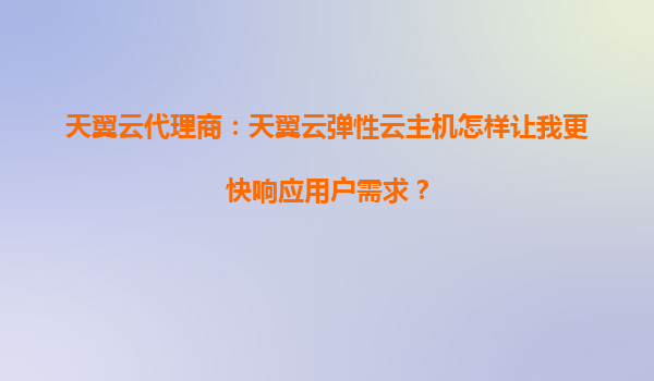 天翼云代理商:天翼云弹性云主机如何助力企业更快响应用户需求?