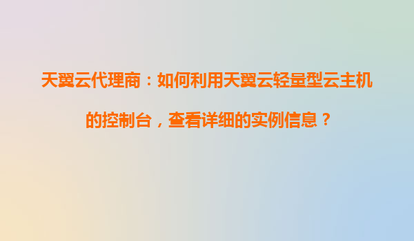 掌握天翼云轻量型云主机控制台:高效查看实例信息的实用指南