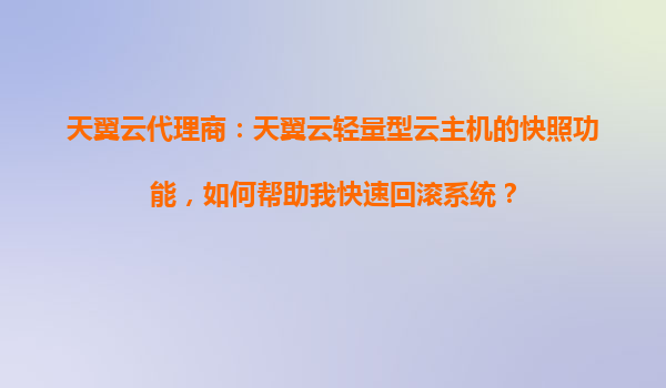 天翼云轻量型云主机的快照功能:高效回滚系统的强力保障
