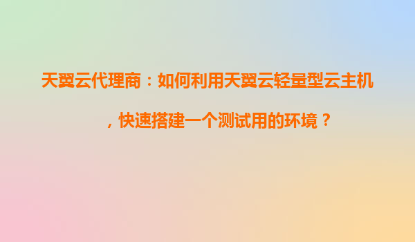 天翼云代理商:如何利用天翼云轻量型云主机快速搭建测试环境
