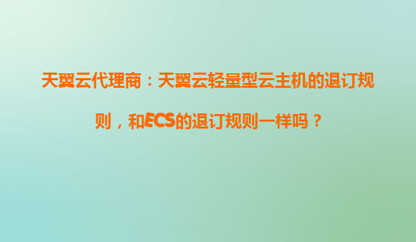 天翼云代理商详解:轻量型云主机与ecs的退订规则对比及优势分析