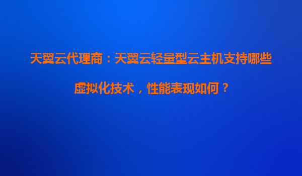 天翼云代理商:天翼云轻量型云主机支持的虚拟化技术与性能表现