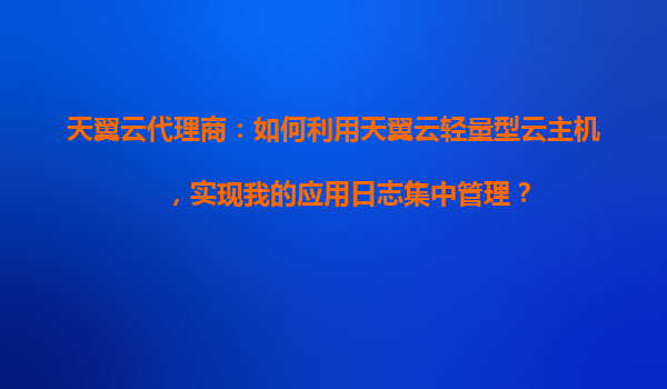 天翼云代理商:如何利用天翼云轻量型云主机实现应用日志集中管理