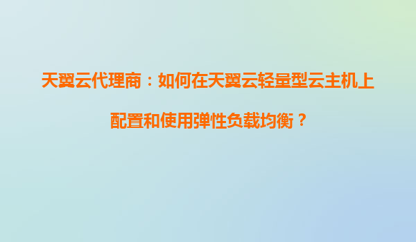 天翼云代理商指南:如何在轻量型云主机上配置和使用弹性负载均衡