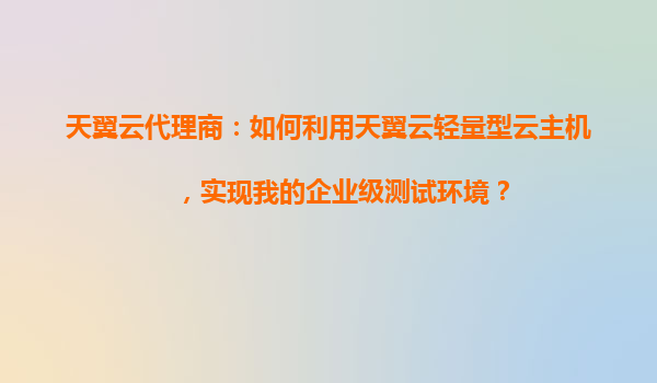 天翼云代理商:如何利用天翼云轻量型云主机实现企业级测试环境
