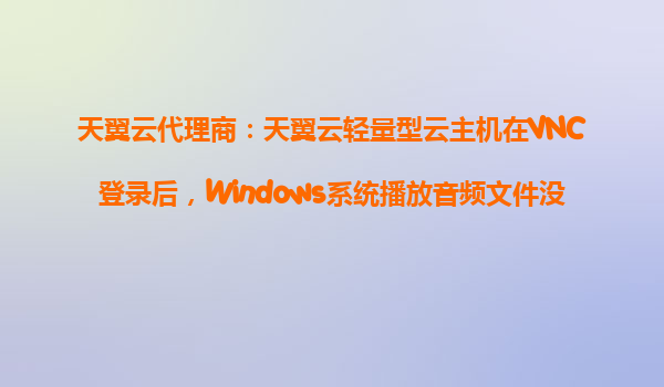 作为天翼云代理商,我们时常收到用户关于天翼云轻量型云主机的咨询,其中Windows系统通过VNC登录后播放音频文件无声音是较为常见的问题。本文将详细分析该问题的原因并提供解决方案,同时阐述天翼云及代理商如何为用户提供优质服务。