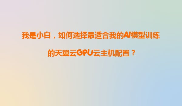 我是小白,如何选择最适合我的AI模型训练的天翼云GPU云主机配置?