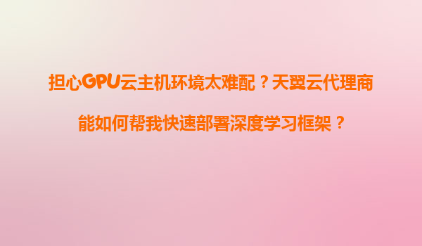担心GPU云主机环境太难配?天翼云代理商如何帮你快速部署深度学习框架