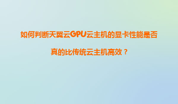 天翼云GPU云主机与传统云主机的性能对比
