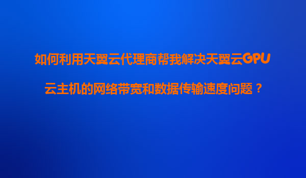 如何利用天翼云代理商解决天翼云GPU云主机的网络带宽与数据传输速度问题