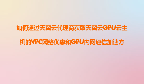 如何通过天翼云代理商获取天翼云GPU云主机的VPC网络优惠和GPU内网通信加速方案?