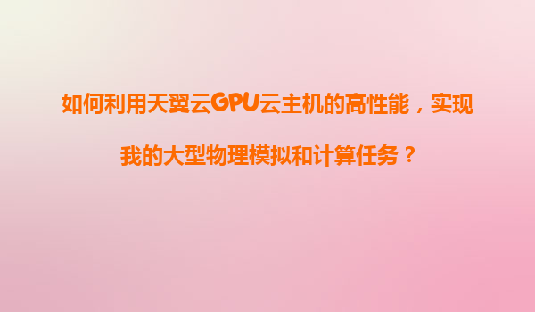 如何利用天翼云GPU云主机的高性能,实现大型物理模拟和计算任务?