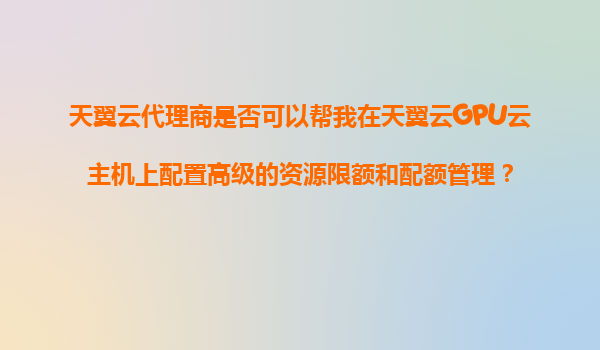 天翼云代理商如何助力用户高效管理GPU云主机资源配额?