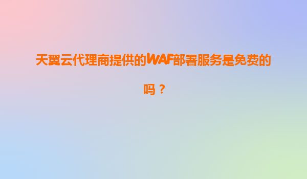 天翼云作为中国电信旗下的云计算服务提供商,其Web应用防火墙(WAF)是企业级安全防护的核心产品之一。关于代理商提供的WAF部署服务是否免费,需从以下两个维度分析: