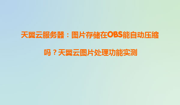 天翼云服务器结合OBS存储:释放图片处理新潜能