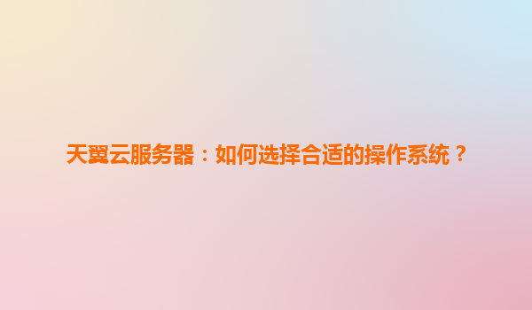 天翼云服务器:如何选择合适的操作系统?