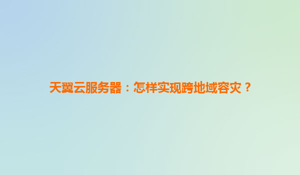 天翼云服务器:如何实现跨地域容灾?