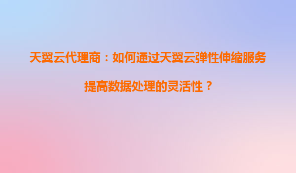 2025-09-16天翼云代理商:如何通过天翼云弹性伸缩服务提高数据处理的灵活性? 前言 在当今数字化时代,企业对数据处理的需求日益增长,尤其在高峰期或突发业务场景下,传统固定资...