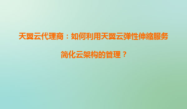 2025-09-16天翼云代理商:如何利用天翼云弹性伸缩服务简化云架构的管理? 引言 随着企业数字化转型的加速,云计算的灵活性、弹性以及高效性成为企业选择云服务的关键因素。天翼云作为中国电信旗下的云计...