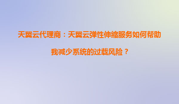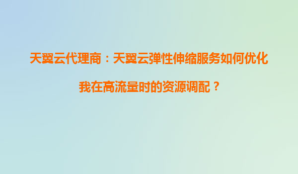 天翼云代理商:天翼云弹性伸缩服务如何优化我在高流量时的资源调配? 一、引言 在高并发或高流量的业务场景下,资源调配的灵活性和效率直接影响企业的运营成本和用户体验。天翼云作为领先的云服务提供...
