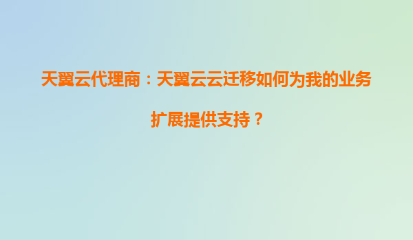 天翼云代理商:天翼云云迁移如何为您的业务扩展提供支持? 引言 在数字化时代,企业业务的快速扩展离不开高效、稳定的云计算支持。作为中国领先的云服务提供商...