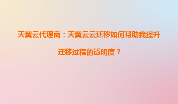 2025-09-16天翼云代理商:天翼云云迁移如何帮助我提升迁移过程的透明度? 引言 在数字化转型的时代,越来越多的企业选择将业务系统迁移到云端,以提高效率、降低成本并增强灵活性。然而,云迁移过程涉及...