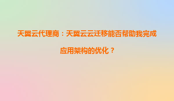 2025-09-16天翼云代理商:天翼云云迁移能否帮助完成应用架构的优化? 引言 在数字化转型的浪潮中,企业对云计算的需求日益增长。云迁移不仅是将现有业务从本地服务器转移到云端的过程,更是优化应...