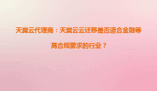 引言:数字化转型中的云迁移选择 在金融、保险等高合规要求行业的数字化转型进程中,云迁移已成为提升业务敏捷性和安全性的关键策略。天翼云作为中国电信旗下的核心云服务品牌,凭借央企背景与技术实力,为金融行业...