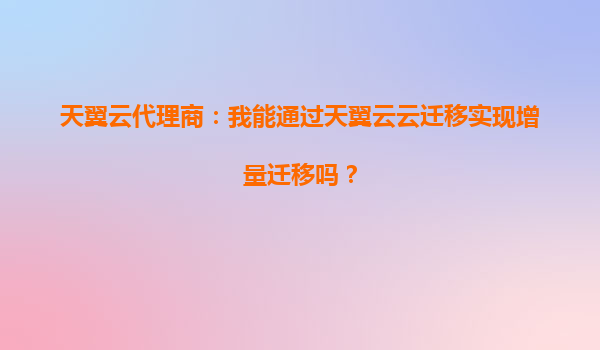 2025-09-16天翼云代理商:我能通过天翼云云迁移实现增量迁移吗? 一、天翼云的优势与技术能力 天翼云作为中国电信旗下的云计算服务品牌,凭借强大的基础设施和技术实力,...