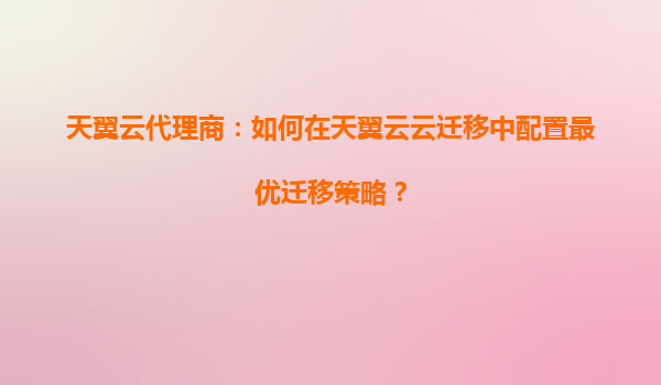 2025-09-16天翼云代理商指南:如何配置最优云迁移策略 理解天翼云迁移的核心优势 天翼云作为中国电信旗下云计算服务品牌,凭借央企级安全底座、全国覆盖的骨干网络以及原生融合的ICT能力,为政企客户提供高度可靠的迁移环...