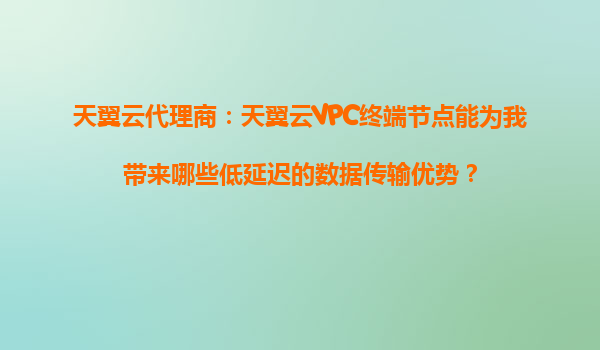 2025-09-16天翼云VPC终端节点:打造低延迟数据传输的关键利器 引言 在云计算时代,数据传输的延迟直接影响企业业务的响应速度和用户体验。天翼云作为中国电信旗下的云计算服务品牌,凭借其强大的基础设施和网络优...