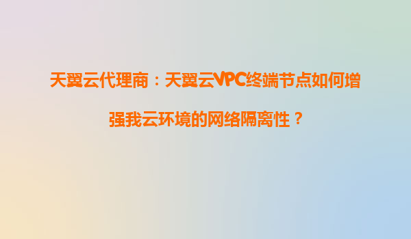 2025-09-16天翼云VPC终端节点如何增强云环境网络隔离性——天翼云代理商的独特优势 一、VPC终端节点的核心价值 天翼云VPC(VirtualPrivateCloud)终端节点是一项关键的网络隔离技术,它通...