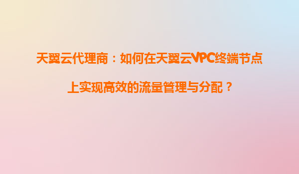 2025-09-16天翼云VPC终端节点流量管理概述 在天翼云的网络架构中,VPC终端节点是实现私有网络与云端服务安全连接的关键组件。作为中国电信旗下的云计算品牌,天翼云凭借运营商级网络优势,为代理商提供了高性能、低延迟的终端...