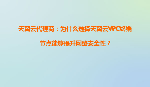 天翼云代理商解析:为什么选择天翼云VPC终端节点能够提升网络安全性? 一、引言 随着企业数字化转型加速,云上网络安全问题日益凸显。天翼云作为中国电信旗下的云计算服务品牌,其VPC(V...
