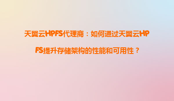 2025-09-16天翼云HPFS代理商:如何通过天翼云HPFS提升存储架构的性能和可用性? 一、天翼云HPFS的核心优势 天翼云高性能文件存储服务(HPFS)是中国电信面向企业级用户推出的分布式文件存储解决方案,具有以...