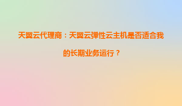 2025-08-29天翼云代理商:天翼云弹性云主机是否适合我的长期业务运行? 一、天翼云弹性云主机的核心优势 天翼云作为中国电信旗下的云计算服务品牌,其弹性云主机(ECS)凭借以下优势成为企业长期业务运行的可靠选择:...