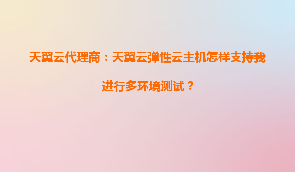 2025-08-29天翼云代理商:天翼云弹性云主机怎样支持我进行多环境测试? 一、天翼云弹性云主机的核心优势 天翼云作为中国电信旗下的云计算服务品牌,其弹性云主机(ECS)凭借高性能、高可靠性和灵活扩展能力,成为企业...