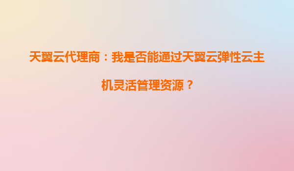 2025-08-29天翼云代理商:我是否能通过天翼云弹性云主机灵活管理资源? 在当今数字化快速发展的时代,企业对云计算的需求日益增长。作为中国电信旗下的云计算服务品牌,天翼云凭借其强大的技术实力和丰富的行业经验,成为...