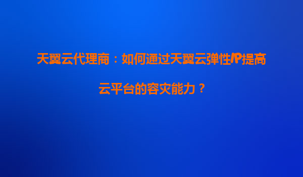天翼云代理商:如何通过天翼云弹性IP提高云平台的容灾能力? 一、引言 在数字化转型的浪潮中,企业上云已成为提升业务竞争力的关键。然而,云平台的稳定性和容灾能力直接影响业务的连续性。天翼云作为中国电...