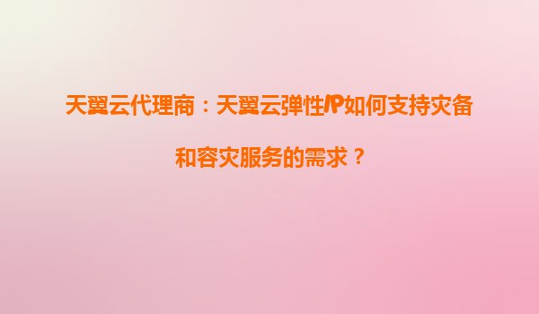 2025-08-27天翼云代理商:天翼云弹性IP如何支持灾备和容灾服务的需求? 一、天翼云弹性IP的核心优势 天翼云弹性IP(ElasticIP)是云计算环境中实现业务高可用的关键组件,其核心优势包括: 灵活绑定与...