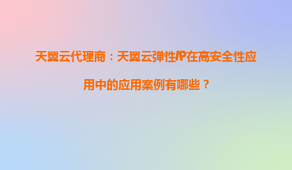 2025-08-27天翼云代理商:天翼云弹性IP在高安全性应用中的应用案例 引言 随着数字化转型的加速,企业对云计算的需求日益增长,尤其是在高安全性应用场景中,稳定、安全的网络连接成为关键。天翼云作为中国电信旗下的...