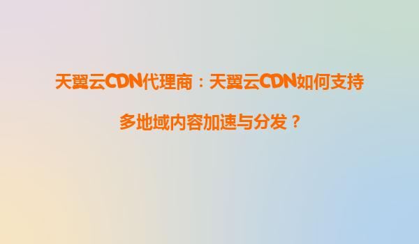 2025-08-24天翼云CDN代理商:天翼云CDN如何支持多地域内容加速与分发? 引言 在数字化时代,内容分发网络(CDN)已成为提升用户体验、优化网站性能的关键技术。作为中国电...