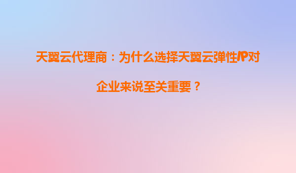 2025-08-25天翼云代理商:天翼云弹性IP如何帮助你优化网络架构? 一、引言:弹性IP与网络架构优化的核心价值 在数字化转型浪潮中,企业网络架构的灵活性、稳定性和成本效率成为关键竞争力。天翼云弹性IP(ElasticIP...
