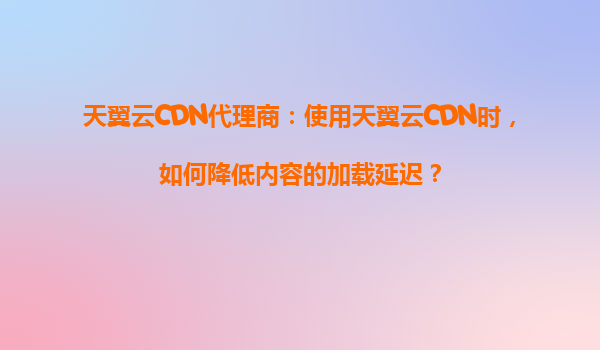 2025-08-23天翼云CDN代理商:使用天翼云CDN时,如何降低内容的加载延迟? 一、天翼云CDN的核心优势 天翼云CDN作为中国电信旗下的内容分发网络服务,凭借其独特的资源和技术优势,能够显著提升用户访问体验。以下是其...