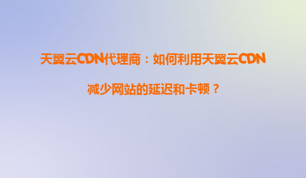 2025-08-21天翼云CDN代理商:如何利用天翼云CDN减少网站的延迟和卡顿? 引言 在数字化时代,网站的访问速度和稳定性直接影响用户体验和业务转化率。延迟和卡顿问题不仅会让用户流失,还可能影响搜索引擎排名。作为天...