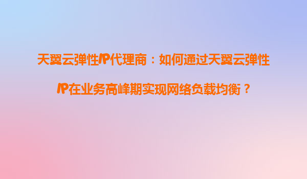 2025-08-21天翼云弹性IP代理商:如何通过天翼云弹性IP在业务高峰期实现网络负载均衡? 一、弹性IP的核心价值与应用场景 天翼云弹性IP(EIP)作为云计算时代的关键网络资源,其核心价值在于提供灵活可变的公网IP地址能力。...