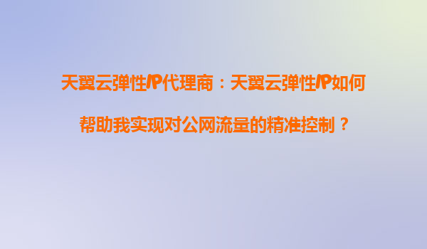 天翼云弹性IP代理商:天翼云弹性IP如何帮助我实现对公网流量的精准控制? 在当今数字化时代,企业对公网流量的精准控制需求越来越迫切。无论是为了提升业务可靠性、优化网络性能,还是保障数据安全,公网...