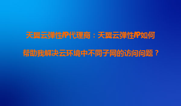 2025-08-21天翼云弹性IP代理商:天翼云弹性IP如何解决云环境中不同子网的访问问题 在云计算环境中,企业常常面临跨子网访问的复杂性问题。不同的业务场景可能需要将资源部署在多个子网中,如何高效、安全地实现互联互通成为关...