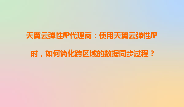 2025-08-20天翼云弹性IP代理商:如何使用天翼云弹性IP简化跨区域数据同步 在当今数字化时代,企业的业务往往跨越多个地区甚至国家。为了确保各地分支机构能够高效协同工作,数据同步成为关键挑战之一。天翼云作为中国电信旗下...