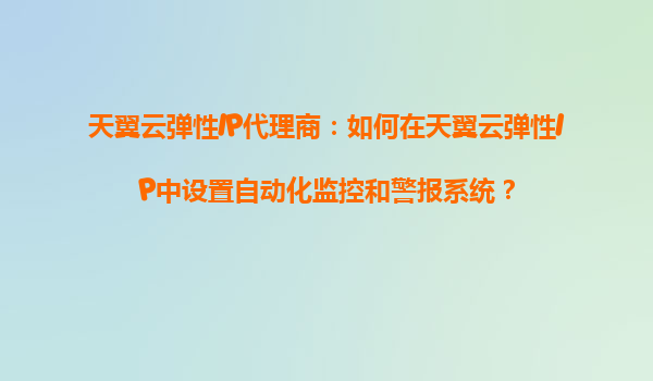 2025-08-20天翼云弹性IP代理商:如何在天翼云弹性IP中设置自动化监控和警报系统? 一、天翼云弹性IP的核心优势 天翼云弹性IP(EIP)作为云计算网络能力的重要组成部分,具有以下核心优势: 灵活绑...